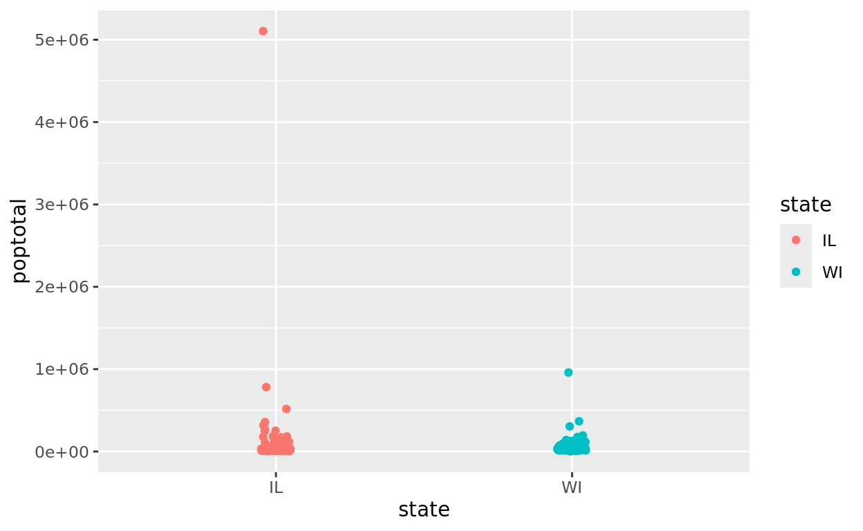 - Illinois has the highest standard deviation in county populations–likely because it has by far the highest single county population of 5,105,067.