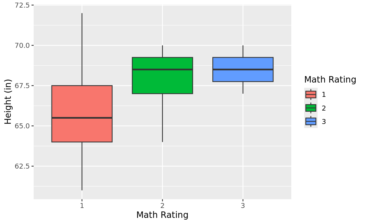 labs(x = "Math Rating", y = "Height (in)", fill = "Math Rating")