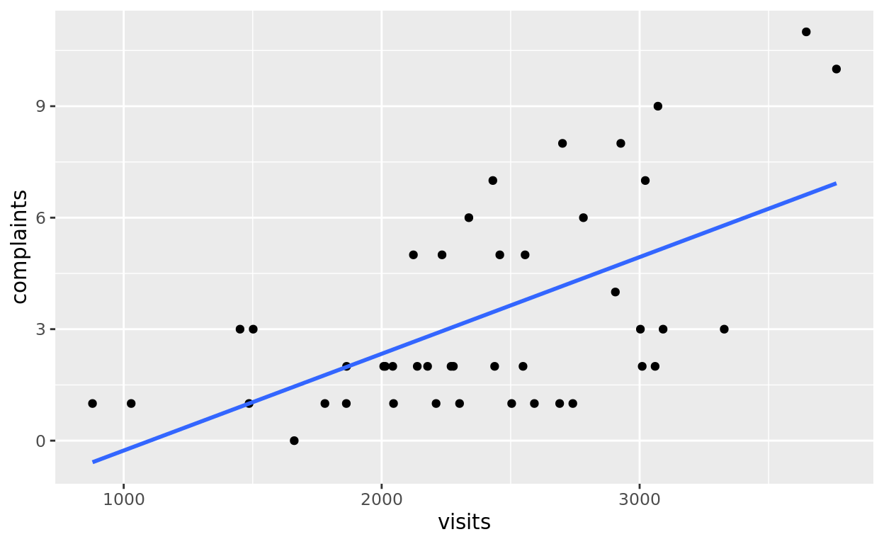mod_visits = lm(data = esdcomp, complaints ~ visits)